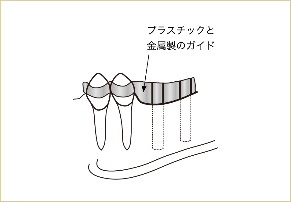 プラスチックと金属でできたサージカルガイド(マウスピースのようなもの)を用いて手術を行うことで、術前に診断した箇所にインプラントを埋入することができる。