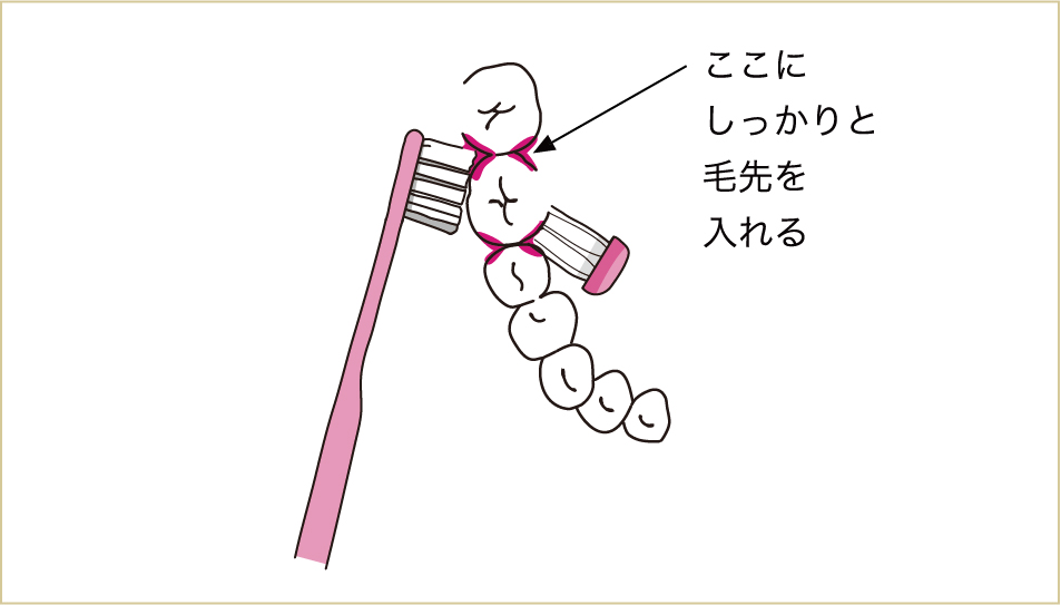 歯周病の予防や治療でブラッシングするのと、ほぼ同じイメージで歯ブラシを当てていくことが大切。